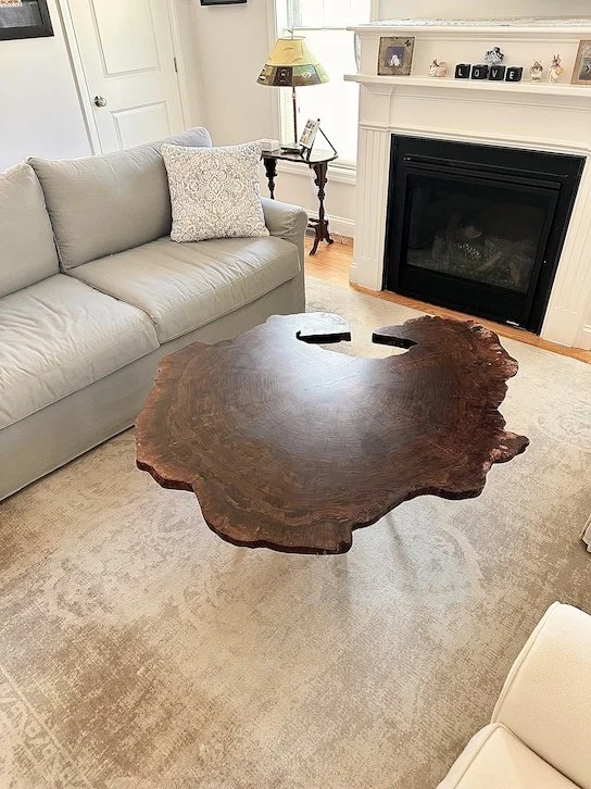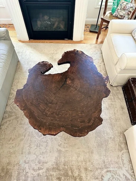 God makes nature grow some pretty neat things, just like this claro walnut burl piece. This repeat client asked for this piece as a coffee table and to leave the unique live-edges as is. The satin finish keeps it classy without a commercial look and the clarity in the grain is perfect to count all the growth rings!