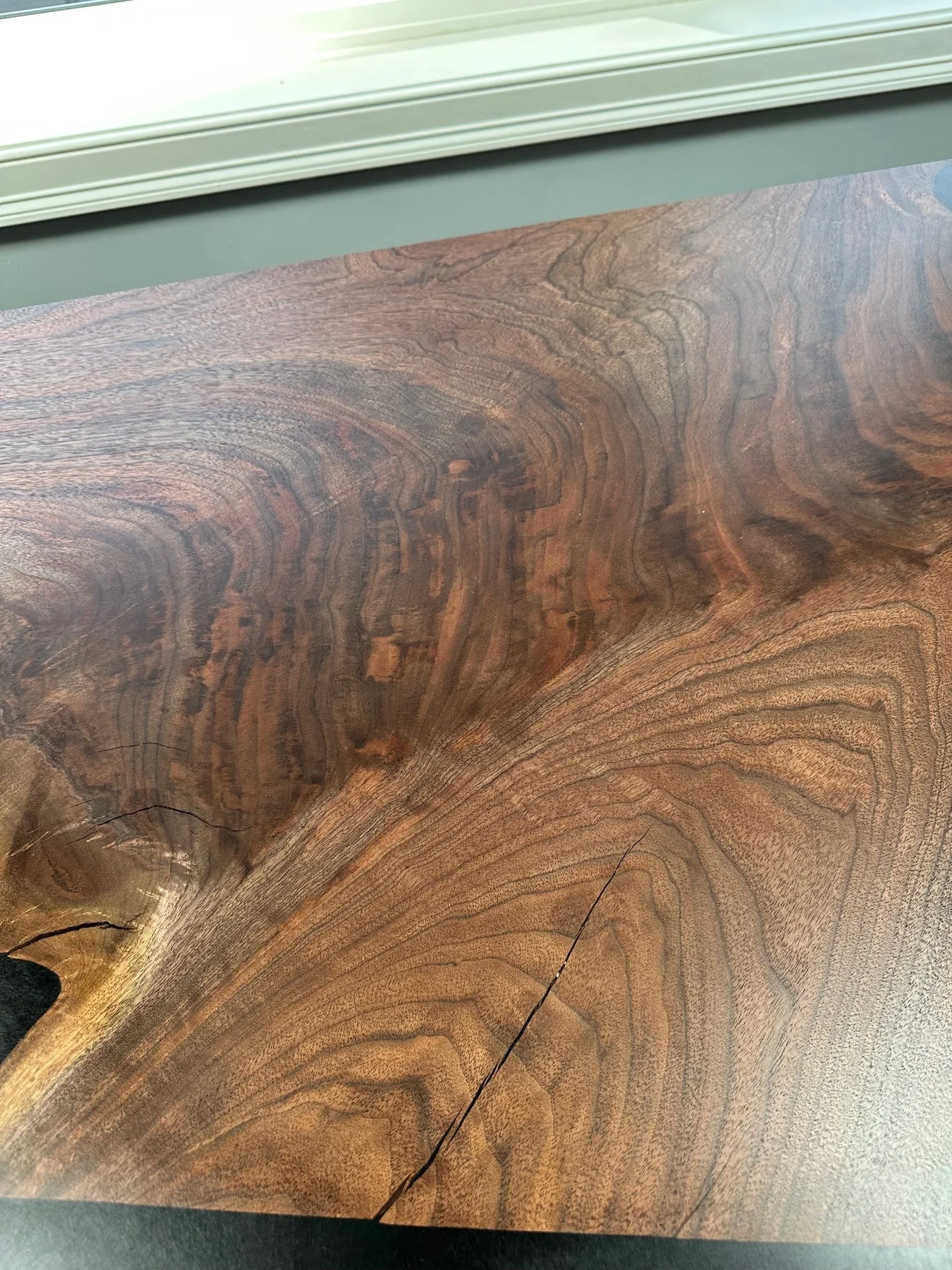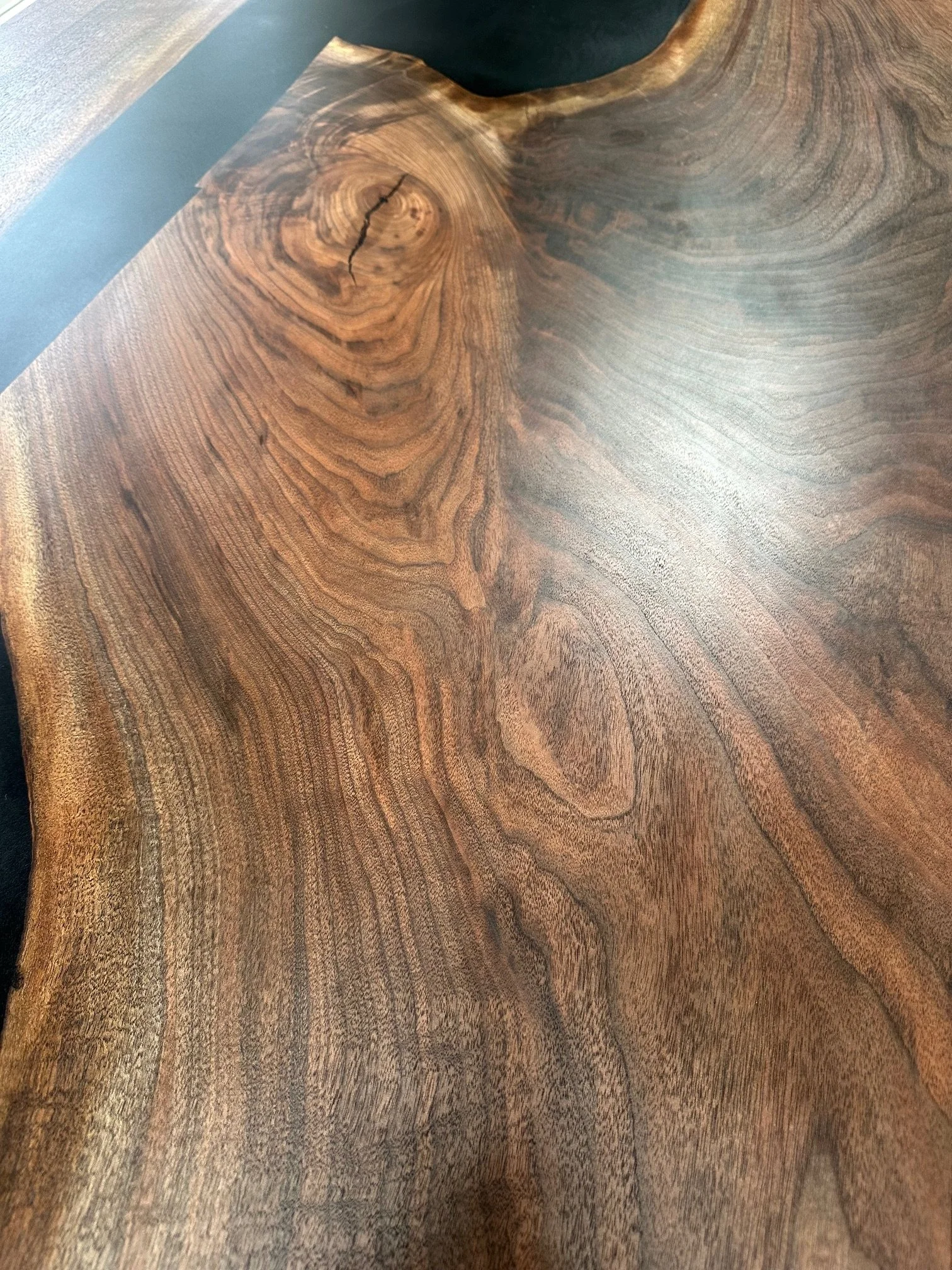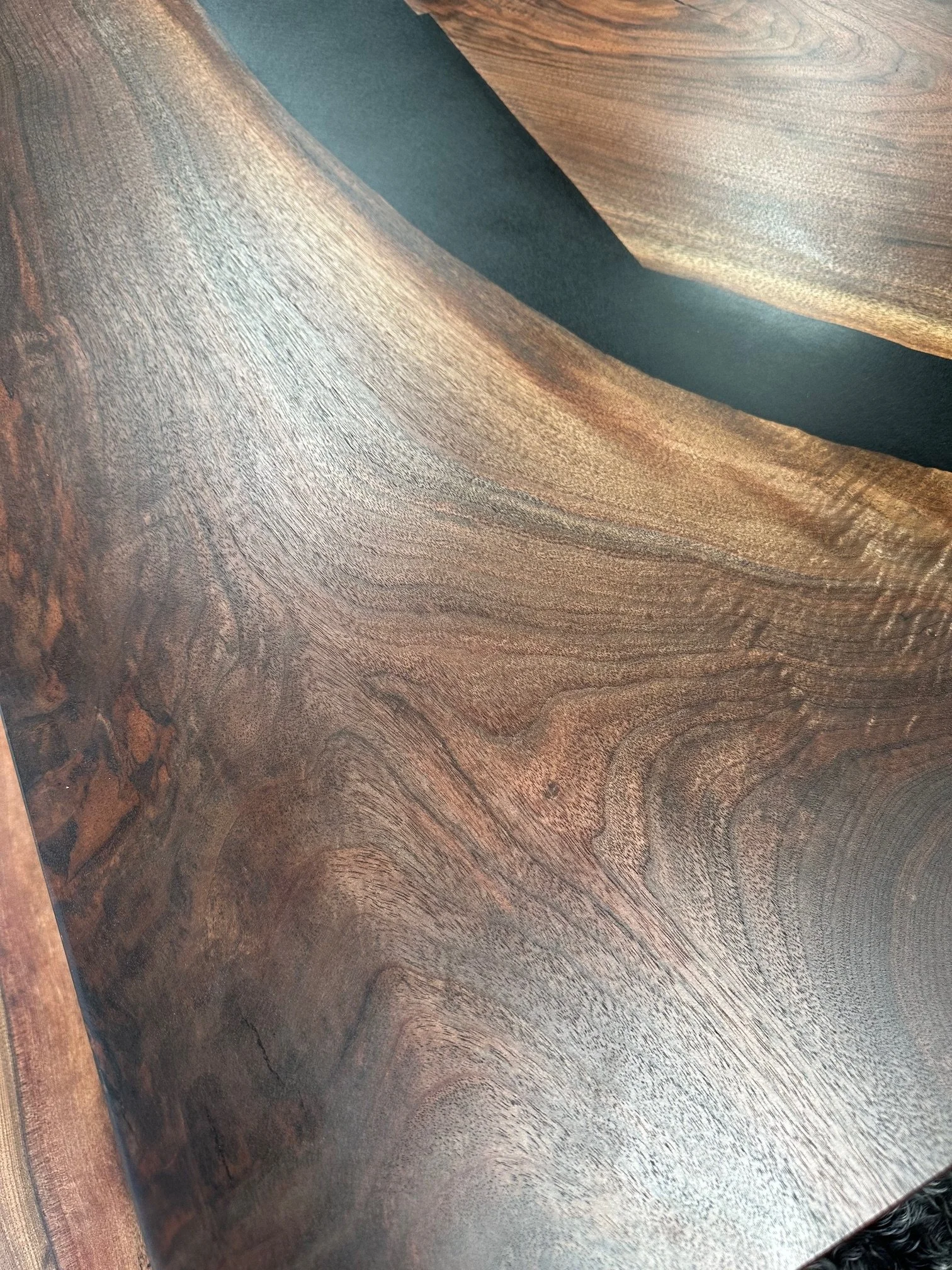 The grain in the slabs has such a nice lustre of chocolate, brick-red, and purplish hues spread throughout the crotch-figure where the trunk split.